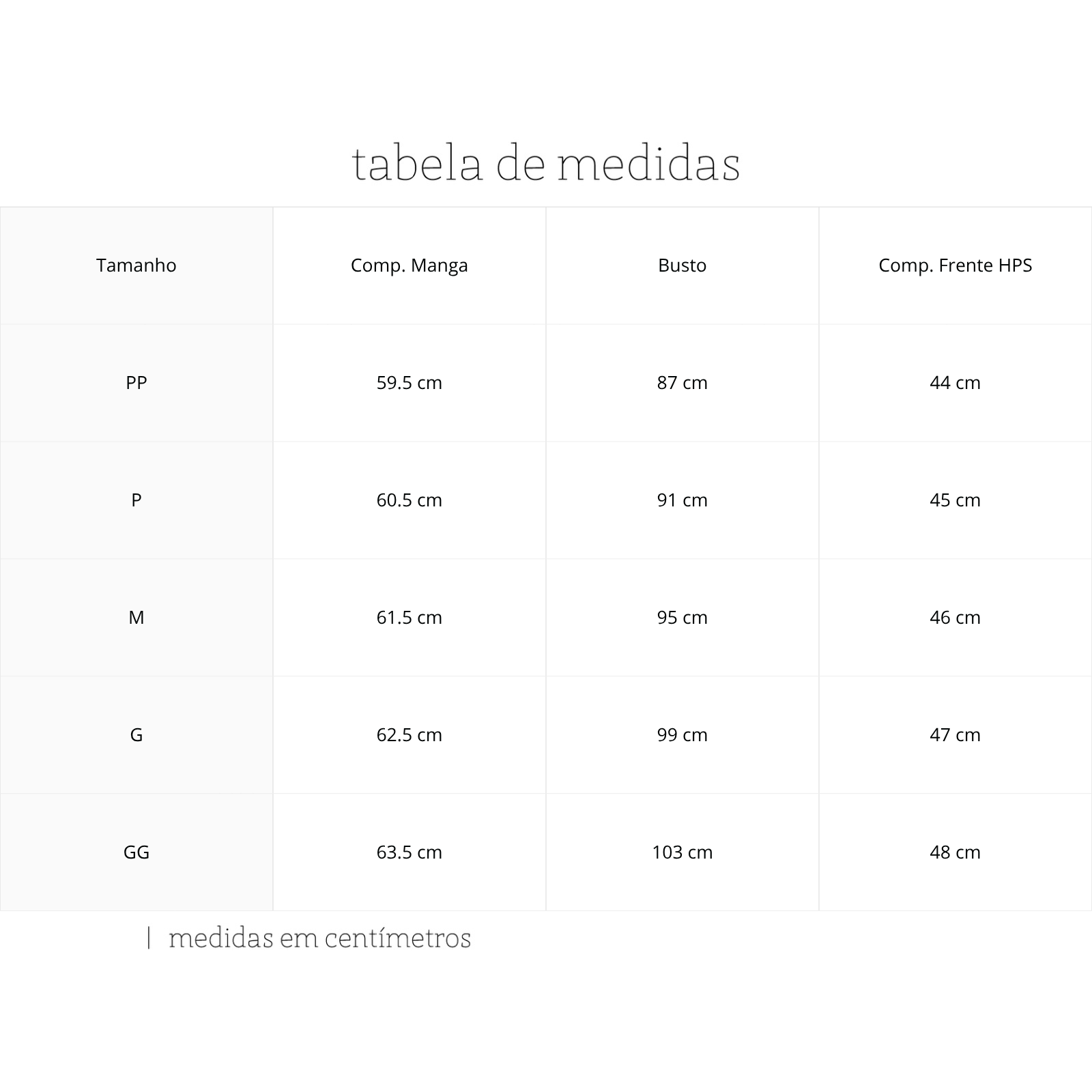A modelo mede 1,75m, tem busto 78cm, cintura 61cm e quadril 87cm. Veste tamanho 34/PP